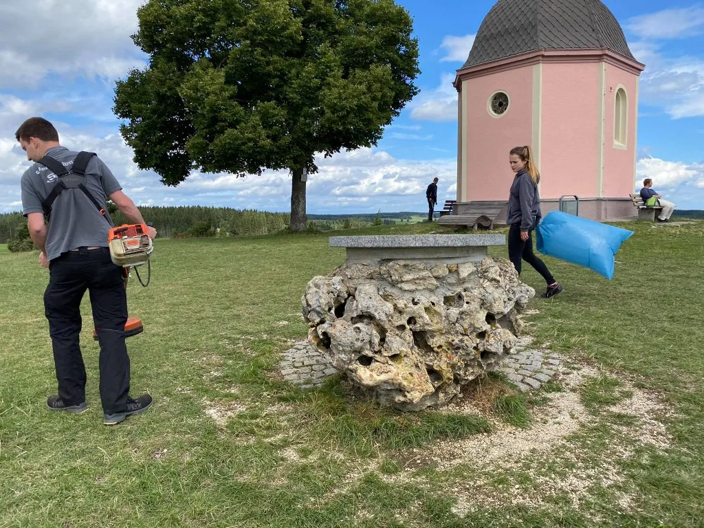 Die Auszubildenden der Firma haben es sich mit der Firmenleitung zur Aufgabe gemacht, im Rahmen eines jährlichen sozialen Projektes die Donaubergland GmbH bei der Wegepflege für „ihren“ Wanderweg im Schäfertal zu unterstützen.
